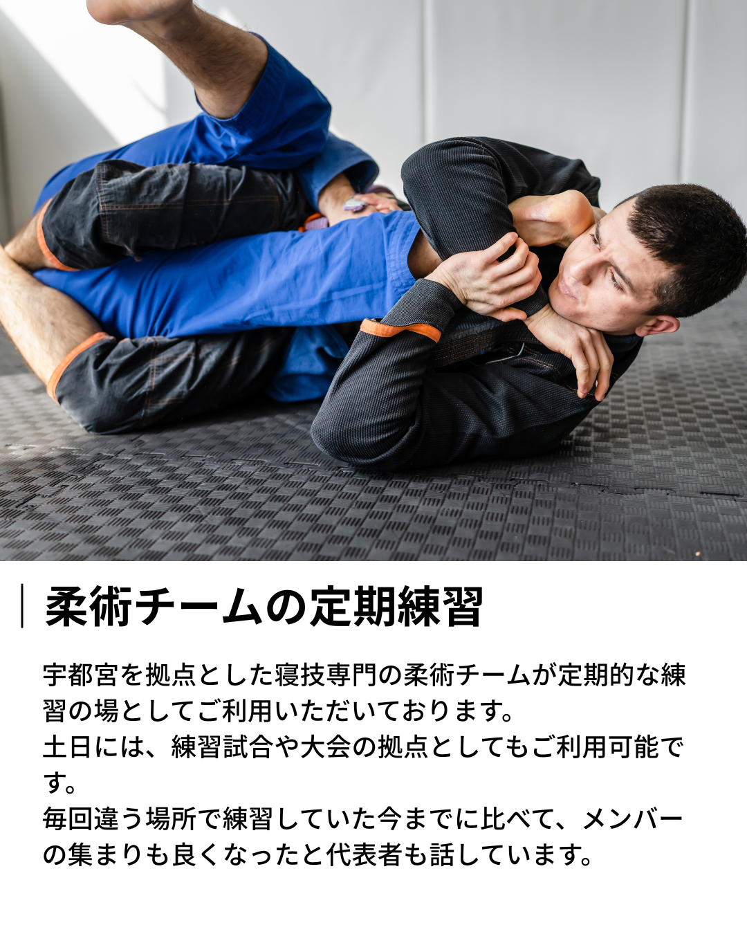 柔術の定期練習のための場所探しの負担を軽減。予約性で固定の練習場所として。